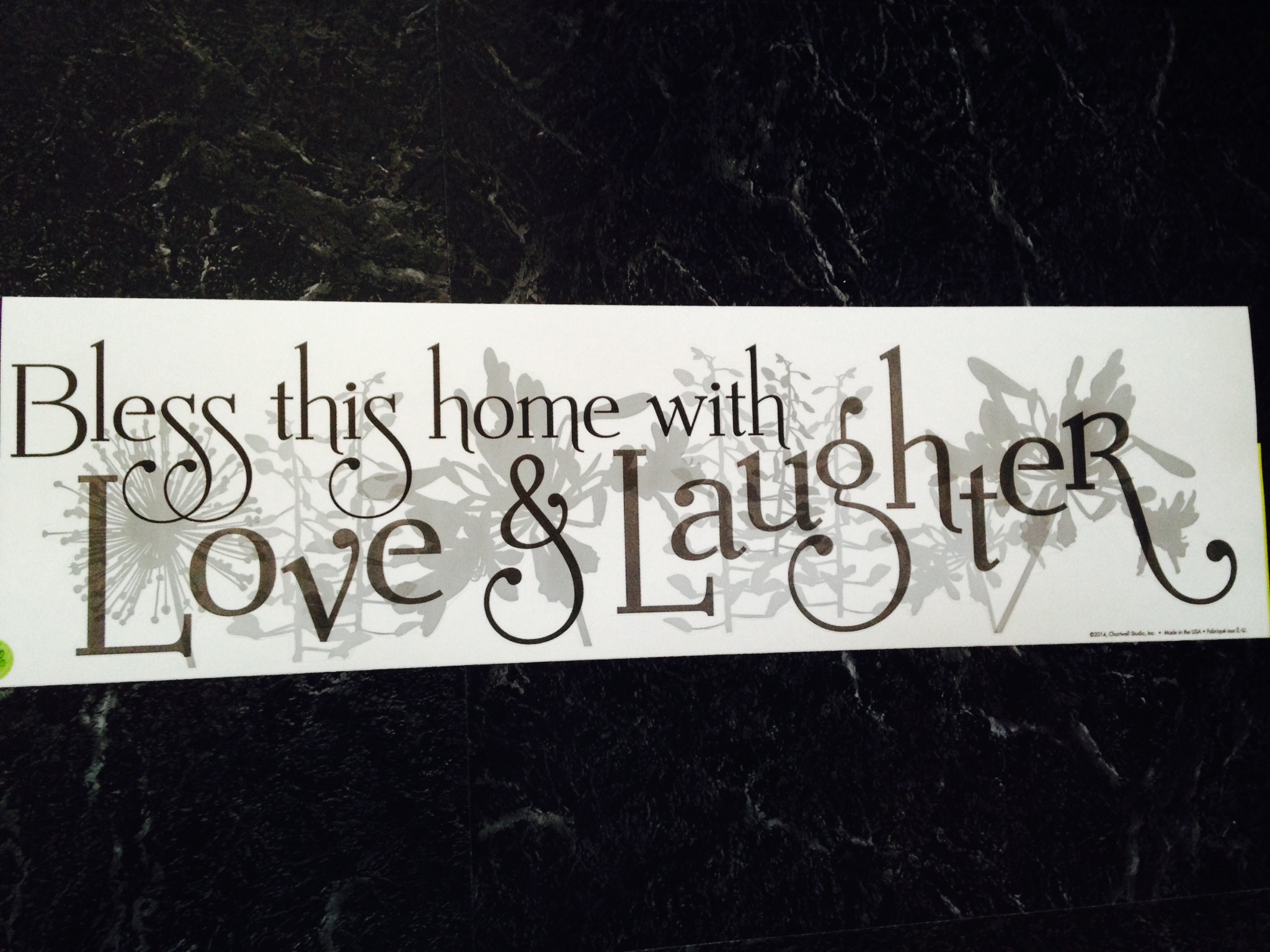 A tradução deste é: “Abençõe esta casa (este lar) com amor e riso”. Meu marido disse que laughter poderia ser alegria também 😉