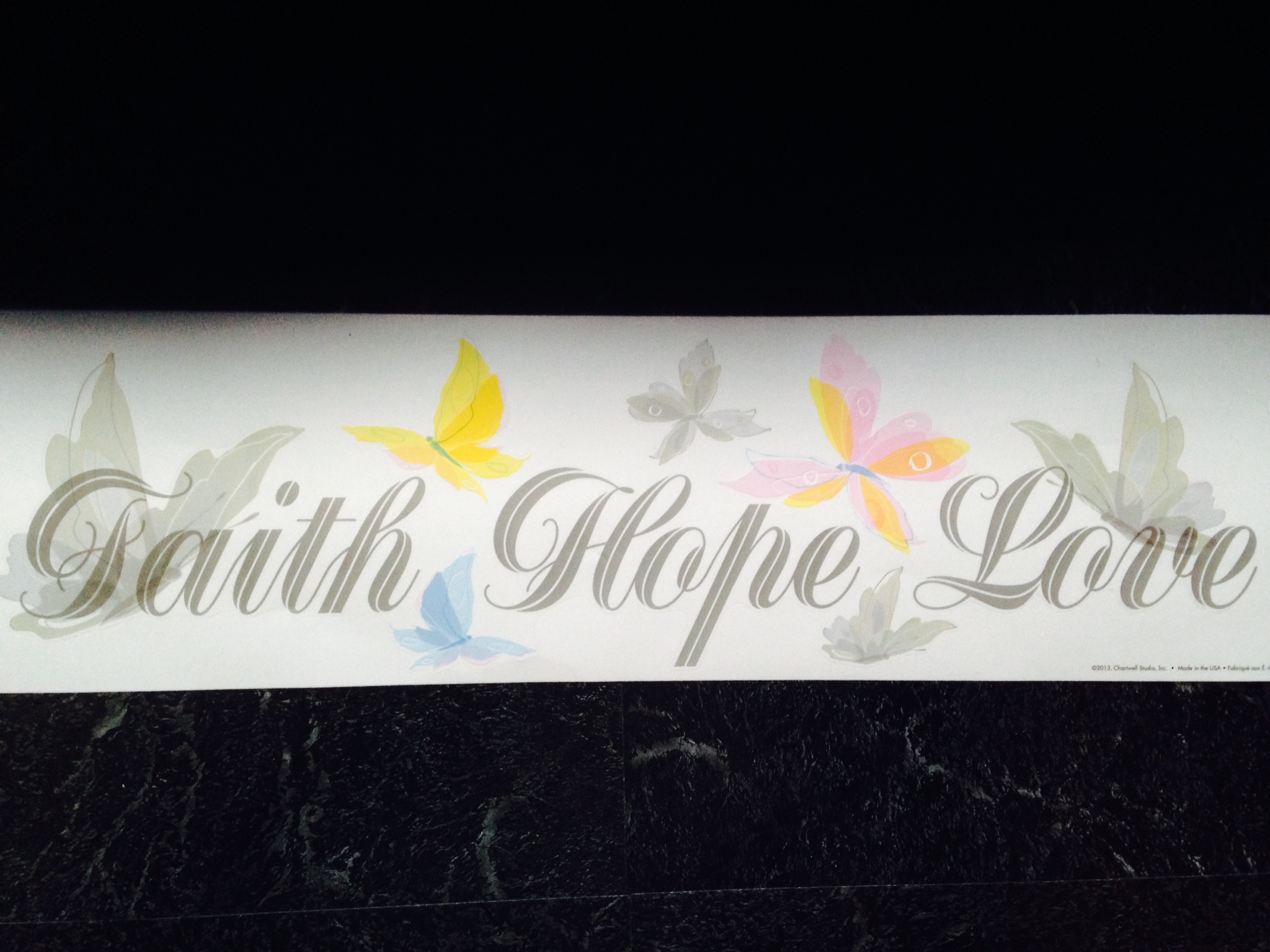 A tradução deste é “Fé, Esperança e Amor” (vem acompanhado com borboletas)