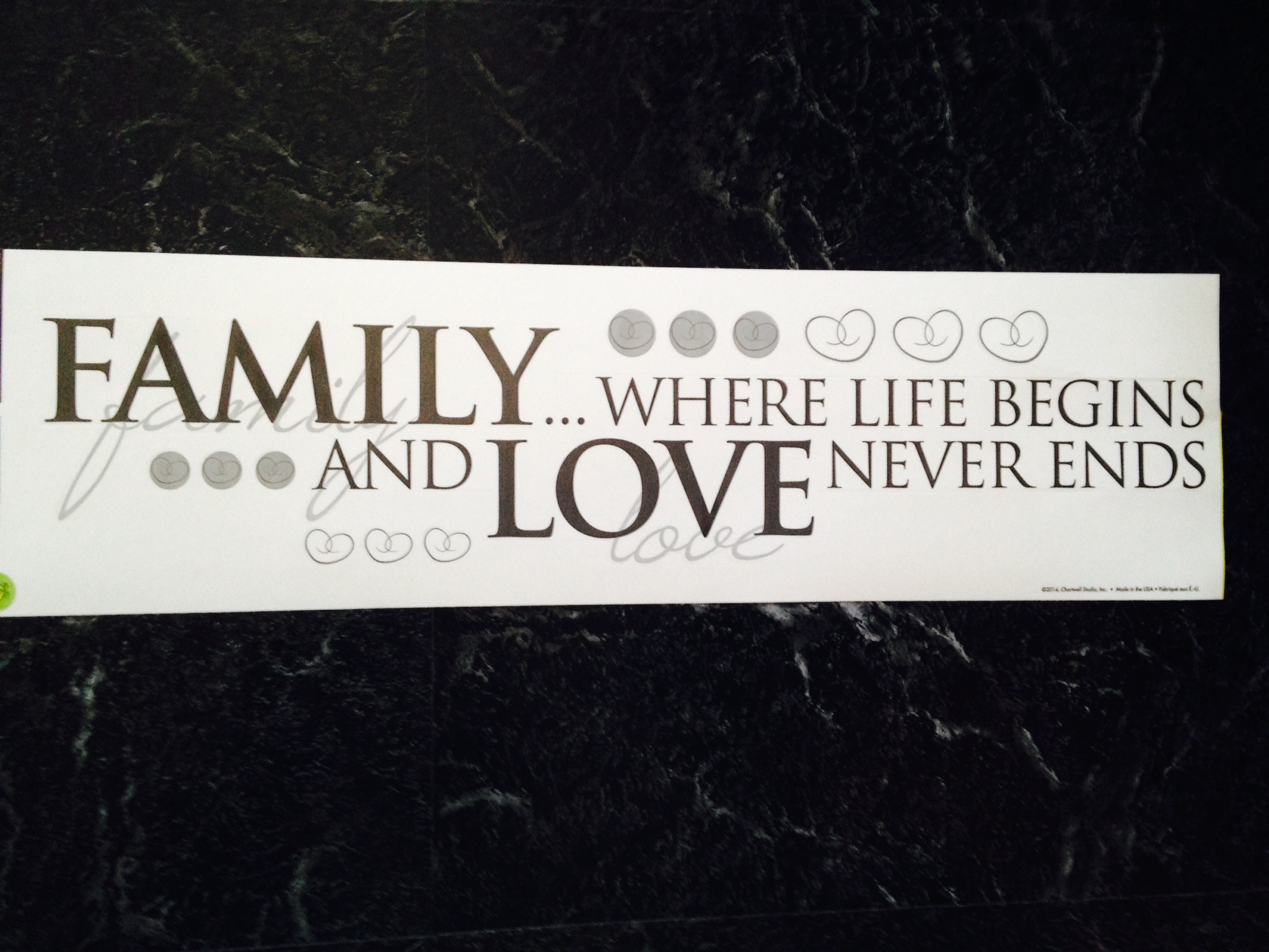 A tradução é: “Família…onde a vida começa e onde o AMOR nunca termina (tem fim)”.