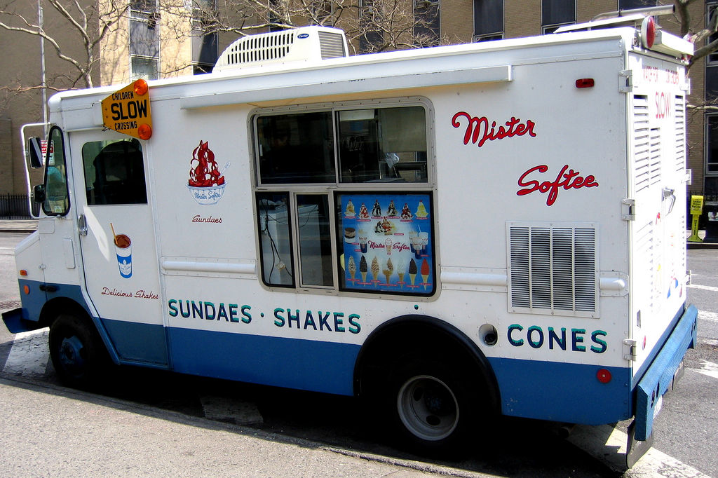 Conhecidos como “ice cream trucks”, esses caminhões costumam estacionar em locais estratégicos, como porta de saída de escolas, nos playgrounds pelas vizinhanças, esquinas movimentadas, etc.