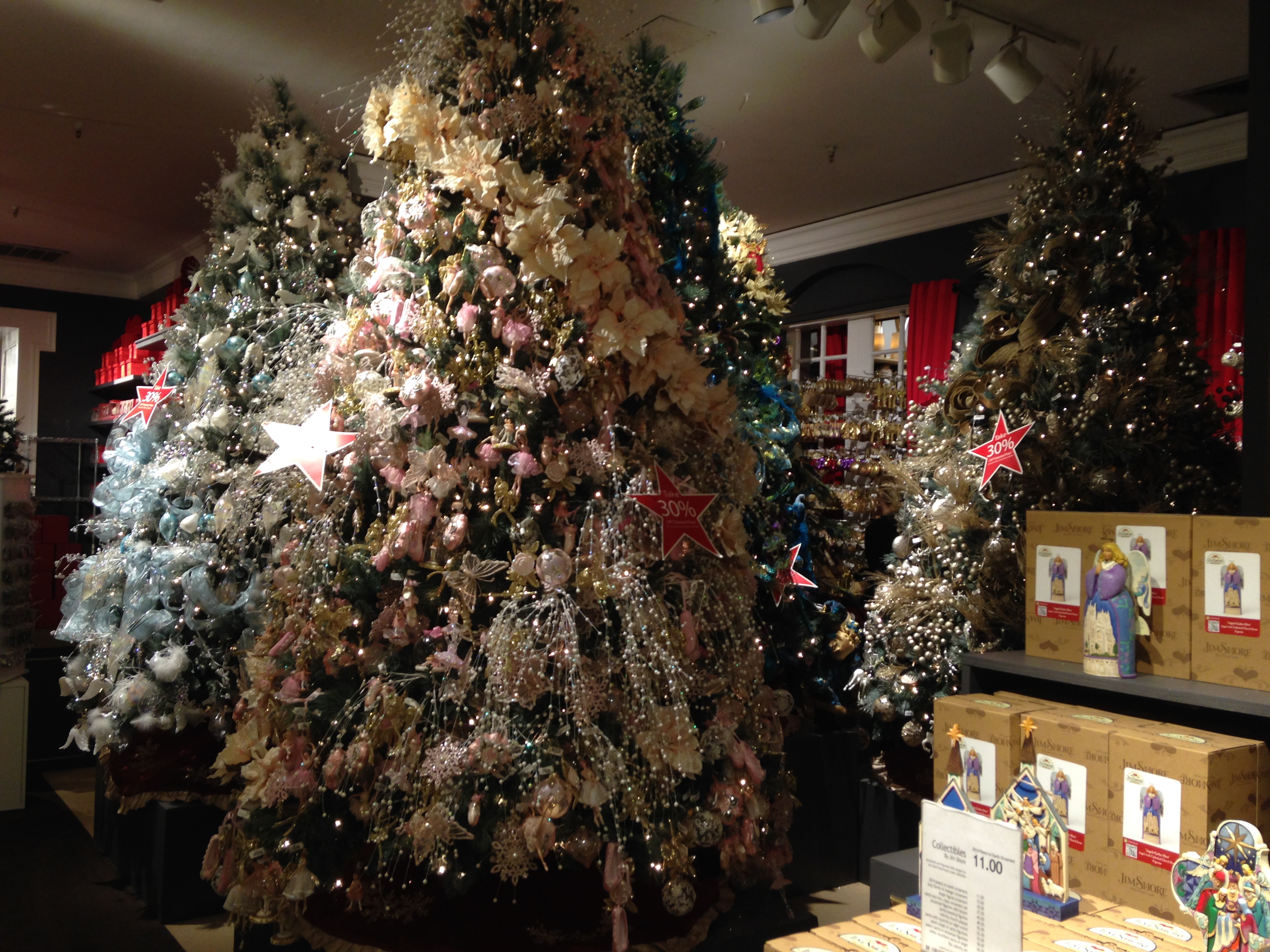 Esta semana eu fui a Macy’s para comprar malas com meus clientes e no mesmo andar onde as malas são vendidas eu encontrei um MUNDO de coisas natalinas. Fiquei maravilhada!!! Não sabia para onde olhar e parecia uma criança 🙂 Colocaram várias opções de árvores e enfeites. As árvores ENOOOORMES e lindas ❤