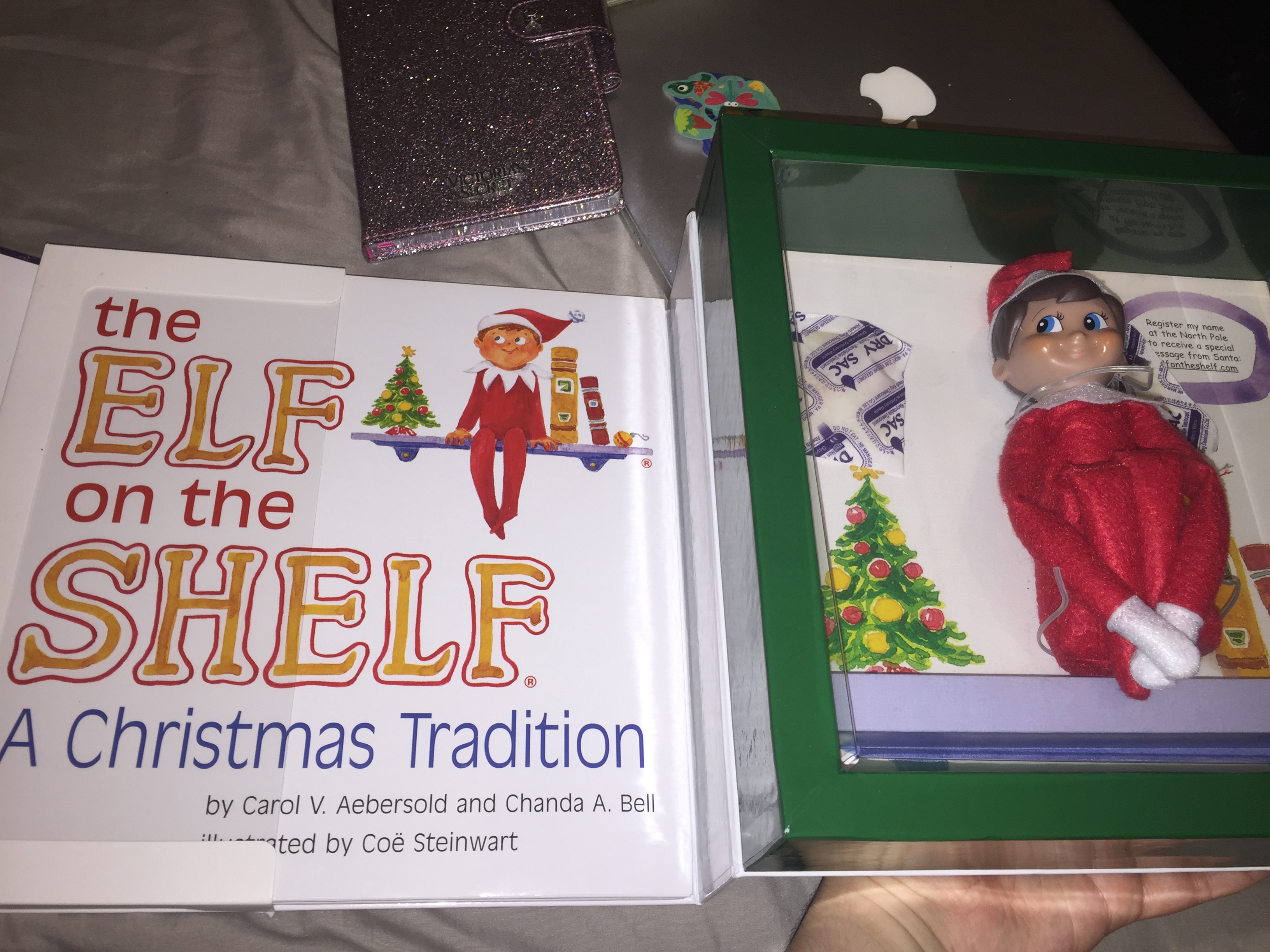 O Elf on the Shelf é uma tradição americana natalina. O Elf é um dos ajudantes do papai Noel. Ele é adotado por uma família e passa a “morar” com ela até a véspera do Natal. O Elf tem como missão “vigiar” o que a criança está fazendo em casa: se está obecendo os pais ou não. E como o Elf tem poderes mágicos dados pelo papai Noel, todas as noites, enquanto a criança está dormindo, ele voa para o Pólo Norte para contar como foi o dia. Baseado no que o Elf contar, o papai Noel decidirá se a criança irá ganhar ou não o presente no dia de Natal. O Elf não pode falar, mas ele pode ouvir o que a criança tem para falar/pedir para o papai Noel. Caso a criança TOQUE no Elf, ele perderá o poder mágico e não poderá mais trabalhar para o papai Noel e, a criança está arriscada a perder o seu presente de Natal.
