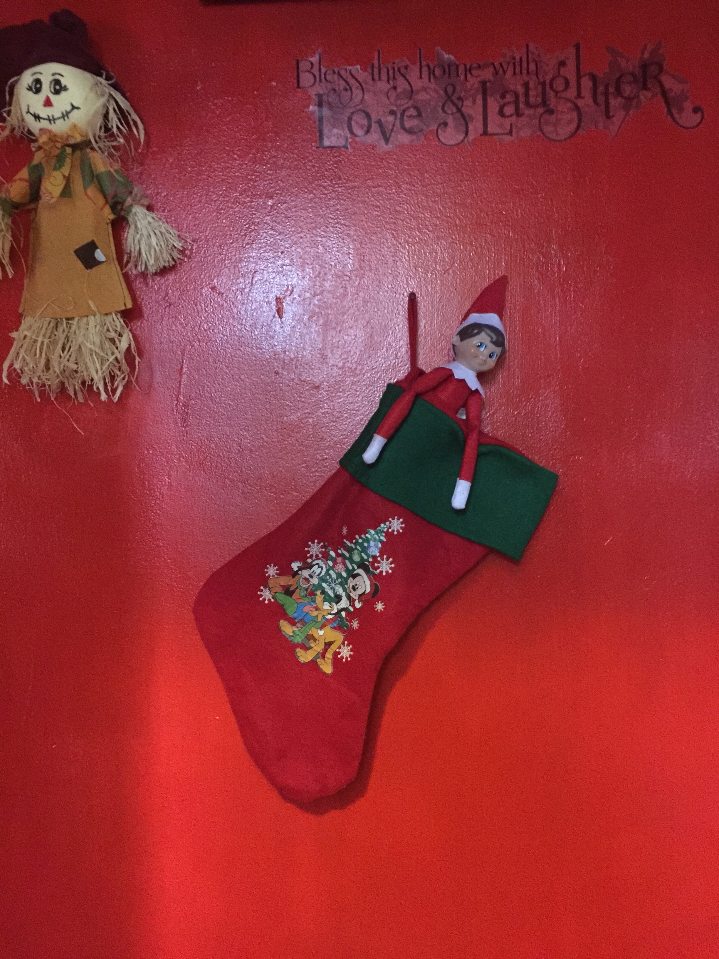 Em um dos dias, Fred foi parar na parede, dentro do sapatinho de Natal do Lukinha.